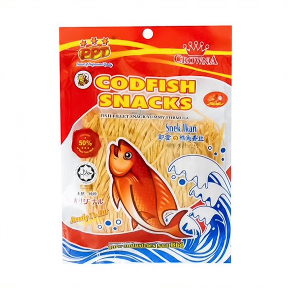 - *5-10 mins in the oven/microwave for a stronger and flakier taste! Our Cod Fish snack is made with quality fresh fish, making it a snack rich in protein and flavour. It has a light fluffy texture and a naturally sweet and savoury taste. It is a popular snack among kids and it will be yours too! Get this snack and make every strip count!