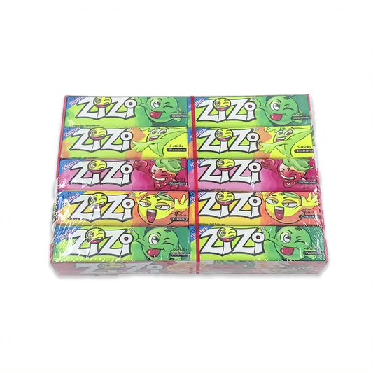 Sugar, gum base, glucose syrup, flavoring, lecithin, maltodextrin, glycerin, citric acid, malic acid, food colouring (sunset yellowm lemon yellow, allura red)